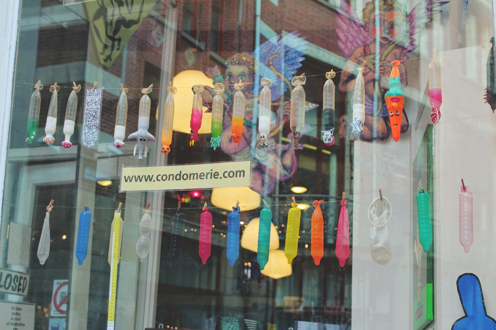 des boutiques farfelues (ici, la "condomerie", boutique dédiée uniquement aux préservatifs. Il y en a pour tous les gouts, de toutes les couleurs, de toutes les formes !),