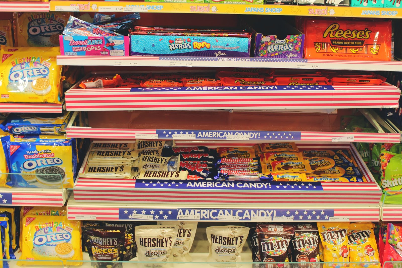 Ici, c'est clairement le fouilli, il y en a vraiment PARTOUT ! Le choix est immense, tout comme son stock. Vous trouverez ici, principalement de l'épicerie Américaine et Anglaise mais surtout beaucoup de choses sucrées ET salées.