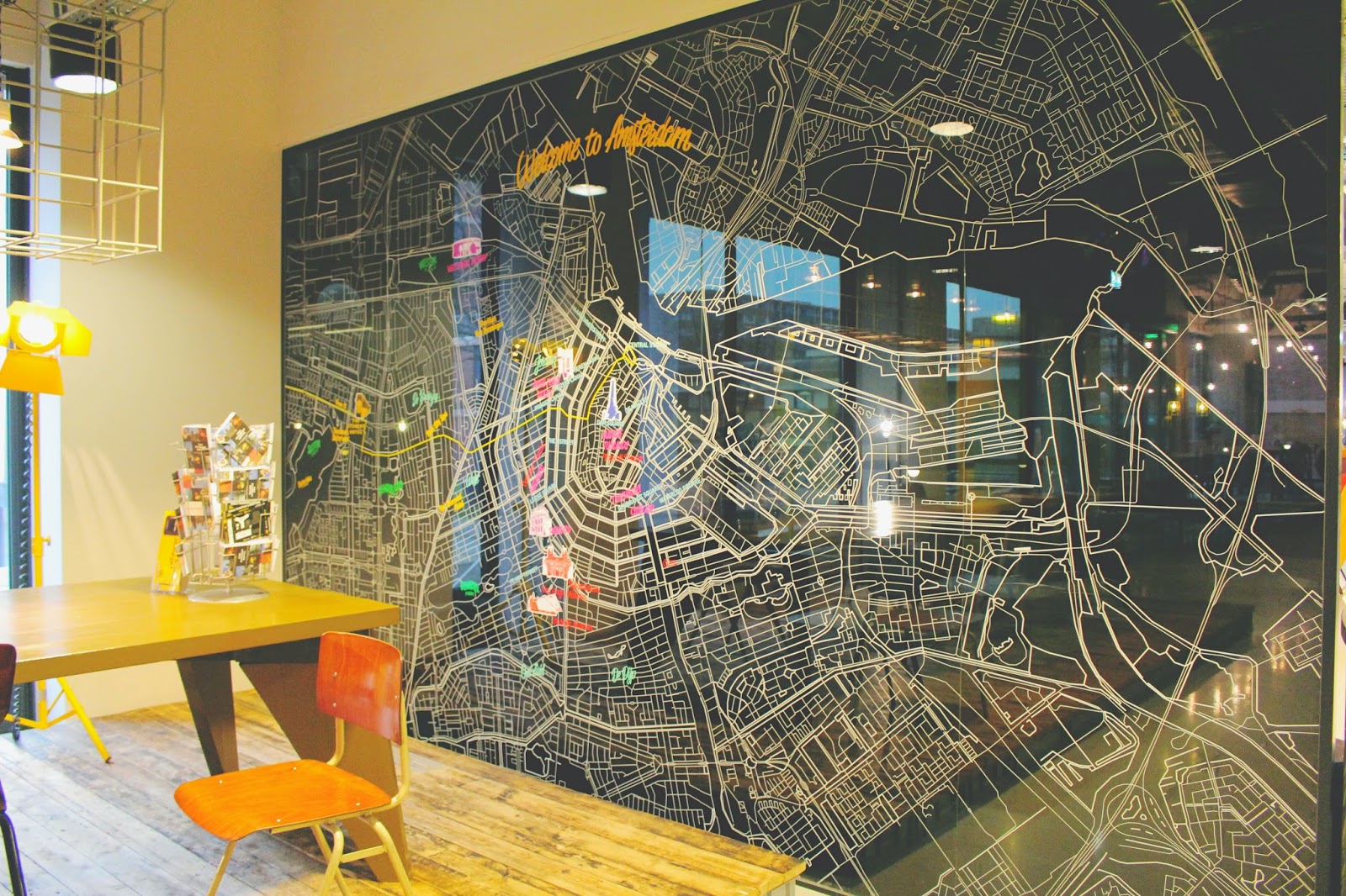 Quelques petits détails que j'ai beaucoup aimé ! Je trouve cette petite citation marrante et la carte d'Amsterdam sur ce grand mur près de la réception est juste incroyable !